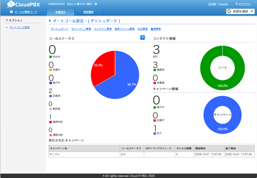 利用画面の確認が出来る、オートコールのデモ環境を公開。