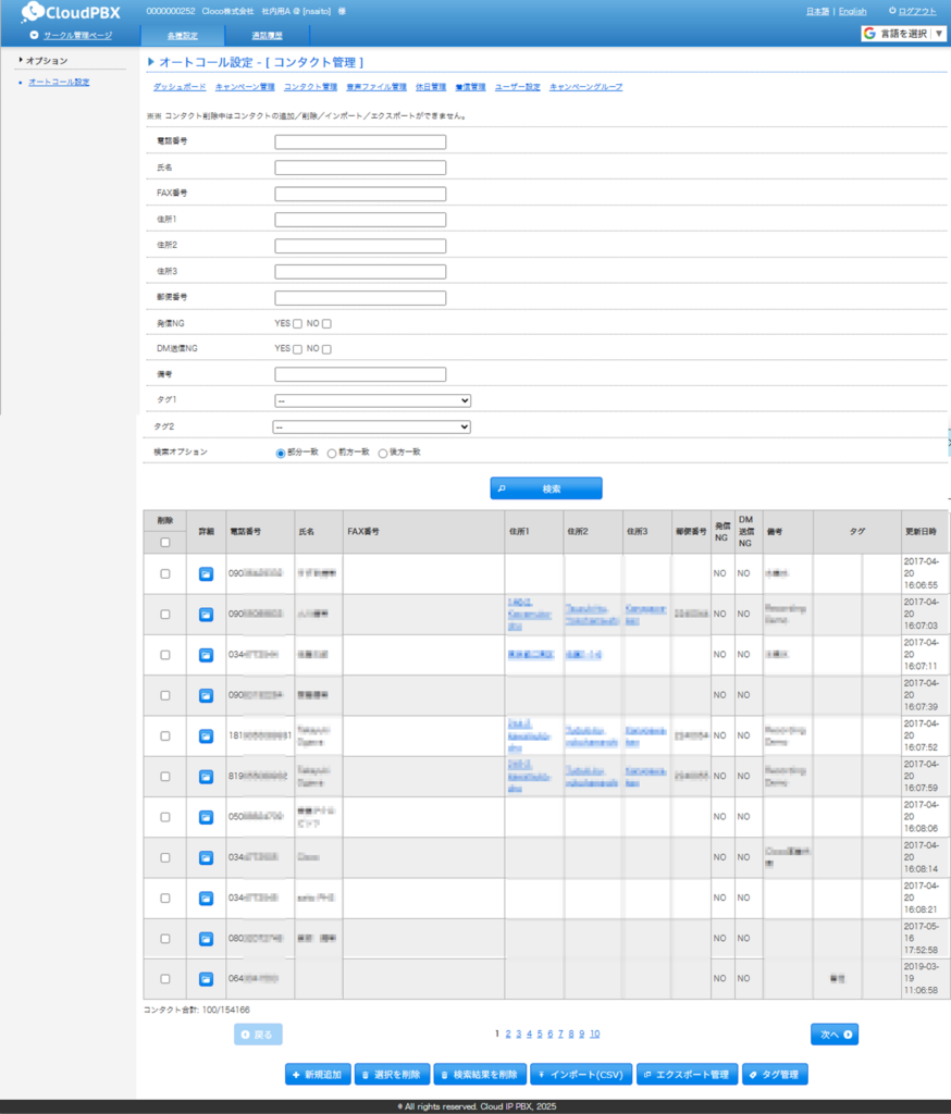ログインURL:https://www.cloudippbx.com/pc/fYYK4YD4pELKwae9/login.php